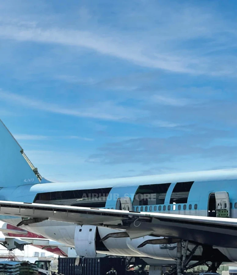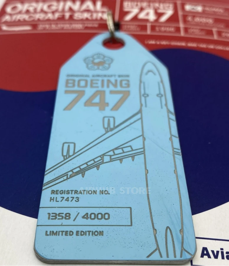 The keychain is carved from a magnificent Boeing 747 with registration HL7473 and manufacturer's serial number (MSN) 28335. The aircraft was delivered to Korean Air in 1996 and had an exceptional operational career until 2017.