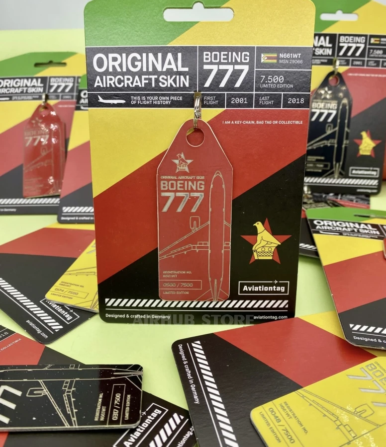 Keychain Aviationtag Boeing 777 Air Zimbabwe N661WT
