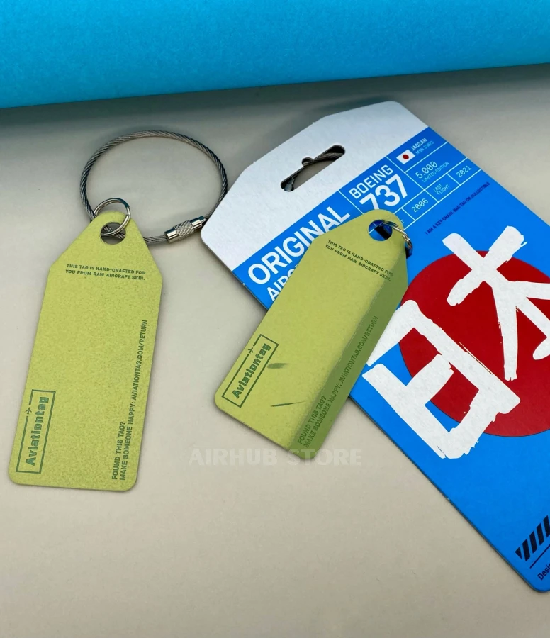 The keychain is cut from the skin of a Boeing 737 - JA02AN, All Nippon Airways (ANA). A member of the Star Alliance in your collection. The Boeing 737-700 was delivered to the Japanese carrier in January 2006 with MSN 33872. After only 15 years of service, JA02AN retired in May 2021 and was then parked in Victorville.