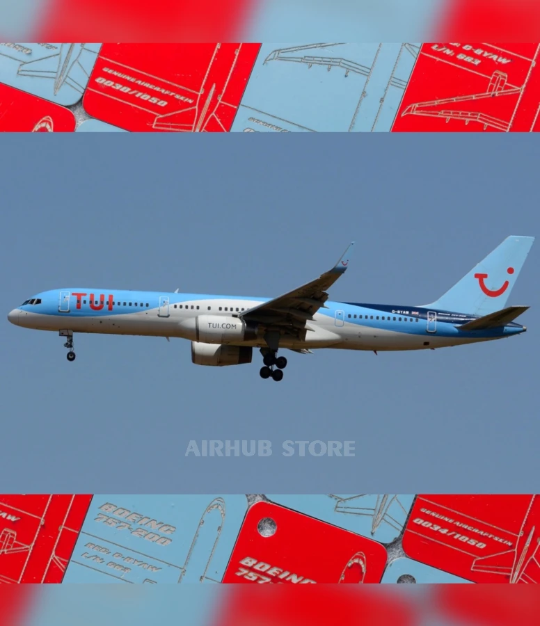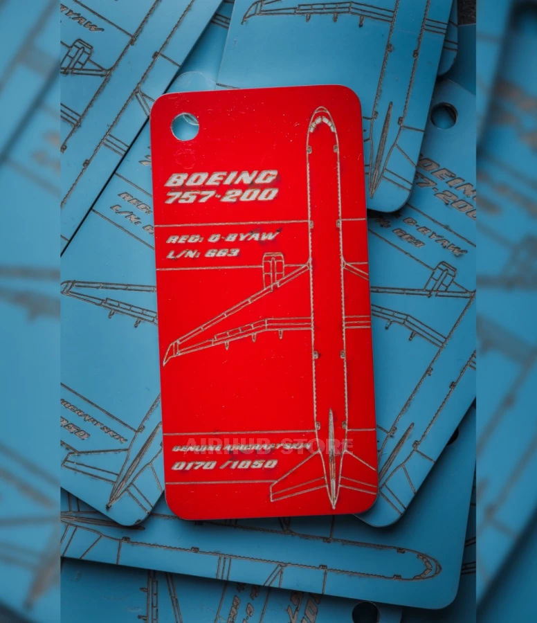 This B757 airplane skin keychain was one of fourteen aircraft in the TUI Airways fleet and operated most of its flights from Gatwick and Manchester airports for tourist purposes. The G-BYAW aircraft has a long history - it was originally part of the Britannia Airways fleet in 1995. In 2005, the management company Thomson Holidays rebranded its subsidiaries, as a result of which Britannia Airways changed its official name to Thomsonfly, which has now been renamed TUl Airways. In 2019, the aircraft was decommissioned and acquired by 2Excel Aviation as a spare parts donor. Thanks to 2Excel Aviation - Fuselage Creations were able to produce these tags for B757 fans around the world!