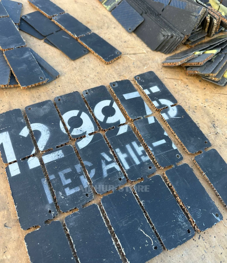 The keychain is made of real airplane skin, the airplane is cut into 286 pieces of keychains, each with its own unique number. The keychains are cut from the fuselage of a Mi-24P, military number 32 Red, registered as RF-95286. It was shot down near the village of Kozarovychi in the Kyiv region of Ukraine on March 5, 2022.