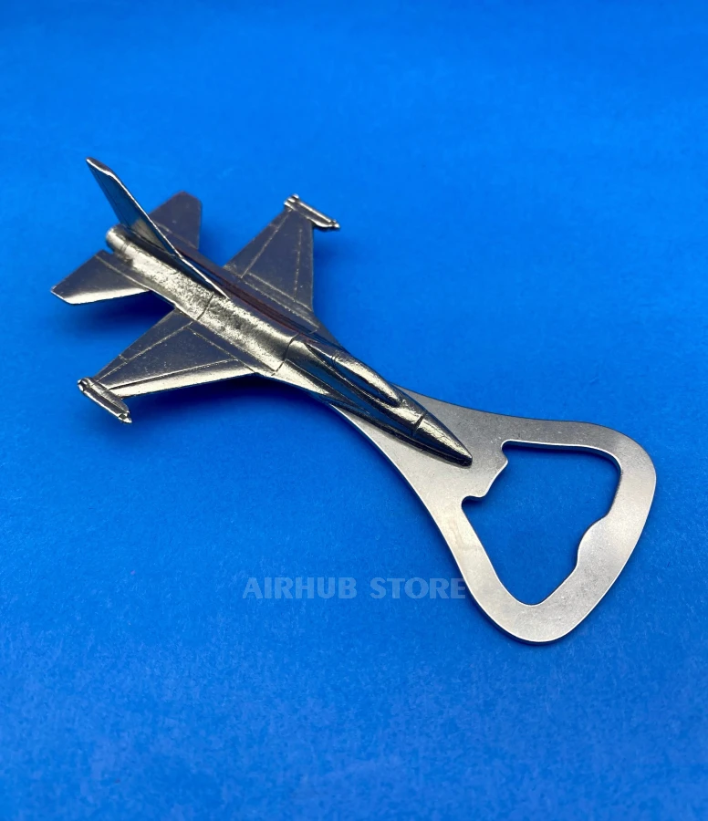 The F-16 Fighting Falcon magnet bottle opener combines an iconic fighter jet with practical functionality. The silhouette of one of the world's most famous fighter jets accurately conveys the proportions of the aircraft — from its swept-back wings to its distinctive fuselage.