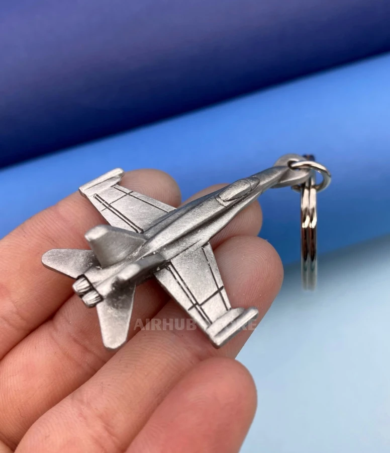 The F/A-18 keychain is a great way to express your affection for this aircraft. The F/A-18 Hornet is an American deck-based multi-role fighter developed in the 1970s. Today it is the main combat aircraft of the US Navy. It is also in service with a number of countries in Europe and Asia, and was used in military operations against Libya, Iraq, and Yugoslavia.
