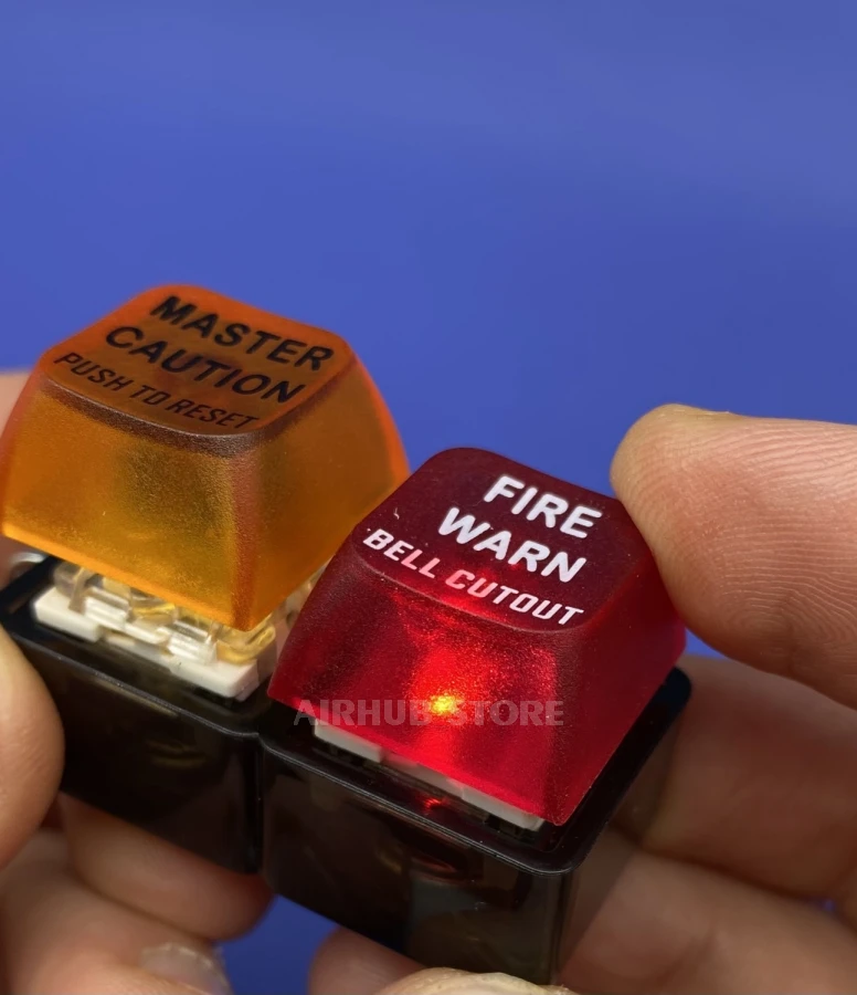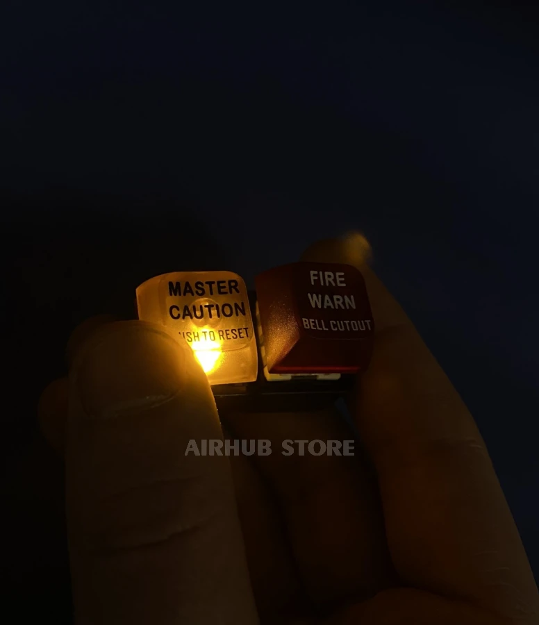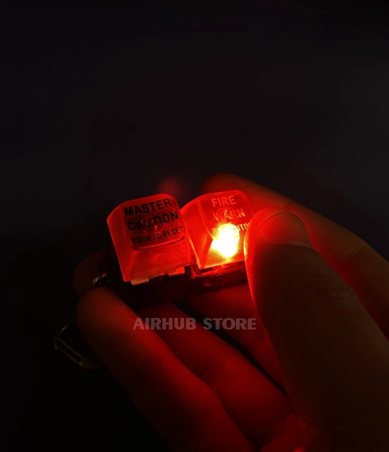 Boeing 737 warning simulator keychain with realistic FIRE WARN, MASTER CAUTION, A/P and OVERSPEED buttons. An ideal souvenir for pilots, aviation fans and collectors.