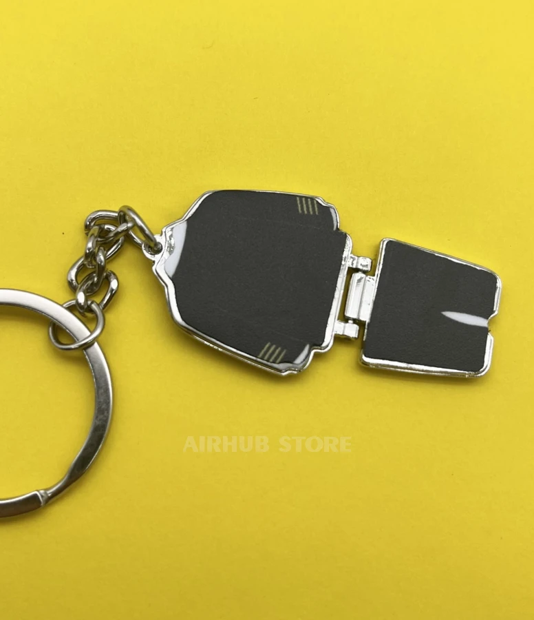 Boeing 737 warning simulator keychain with realistic FIRE WARN, MASTER CAUTION, A/P and OVERSPEED buttons. An ideal souvenir for pilots, aviation fans and collectors.