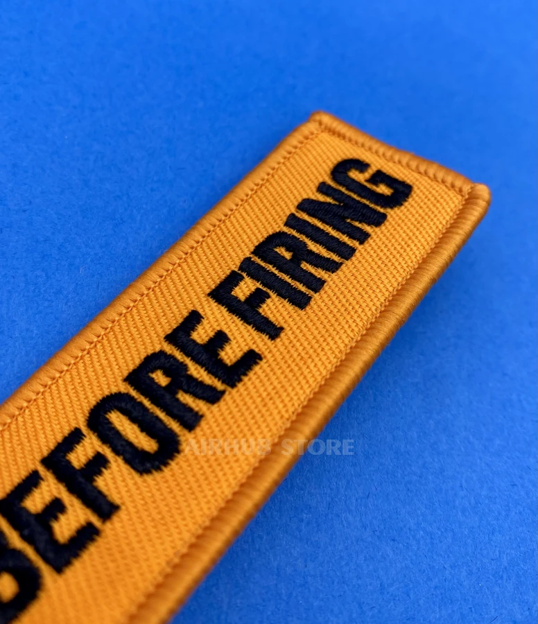 The REMOVE BEFORE FIRING keychain is not just an accessory, but a piece of true aviation spirit. Similar markings are used in military equipment to indicate parts that must be removed before launching weapons or systems. This textile keychain features high-quality embroidery, ensuring durability and a stylish look. Its bright color makes it easy to find in your bag or on your keys. The perfect choice for pilots, technicians, aviation enthusiasts, and anyone who appreciates unique items with character.