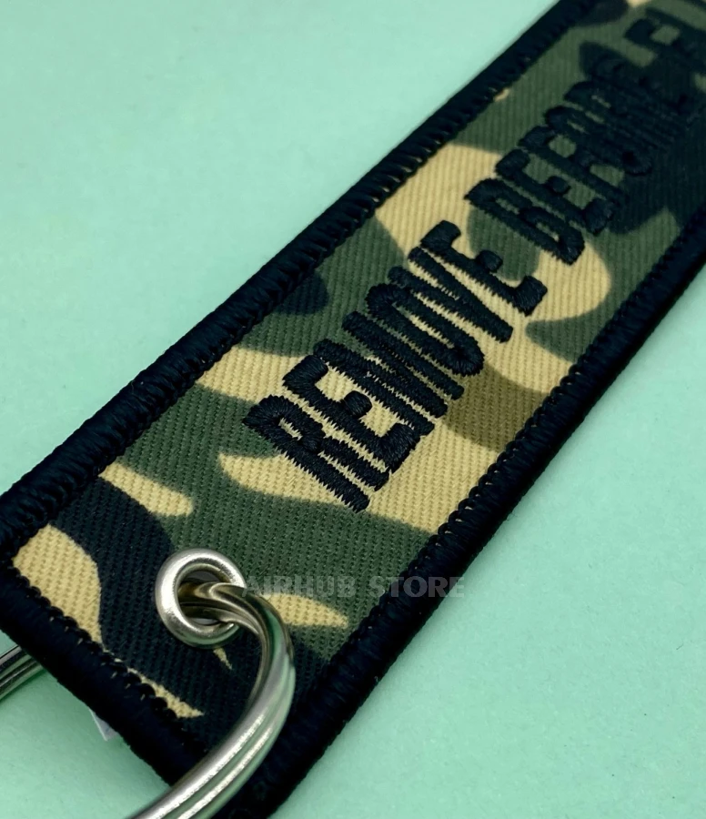 Remove Before Flight military khaki Keychain