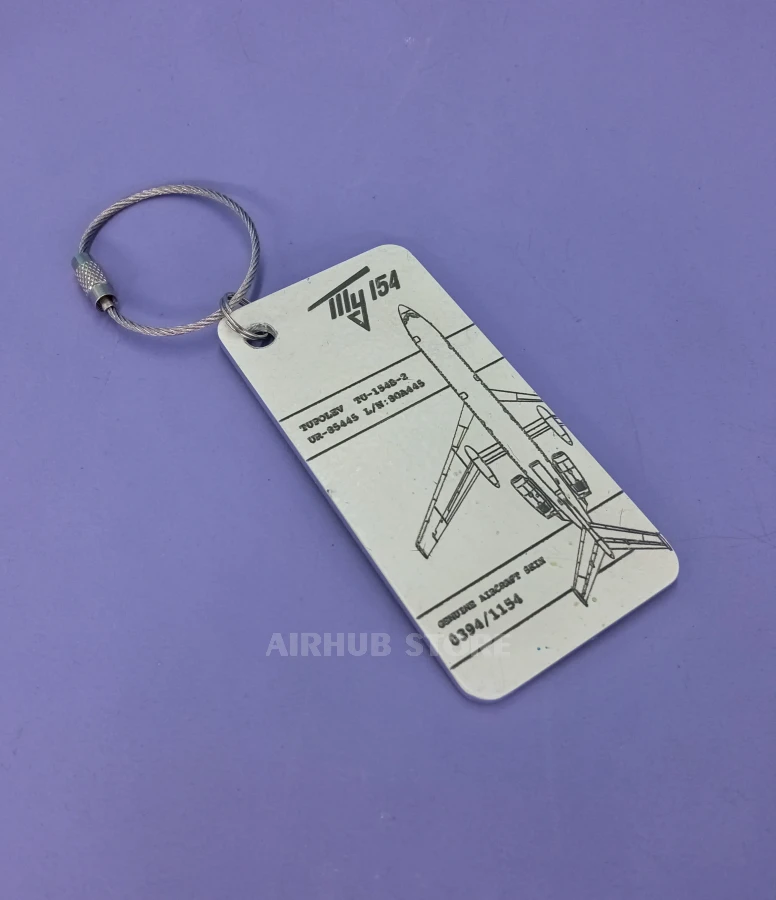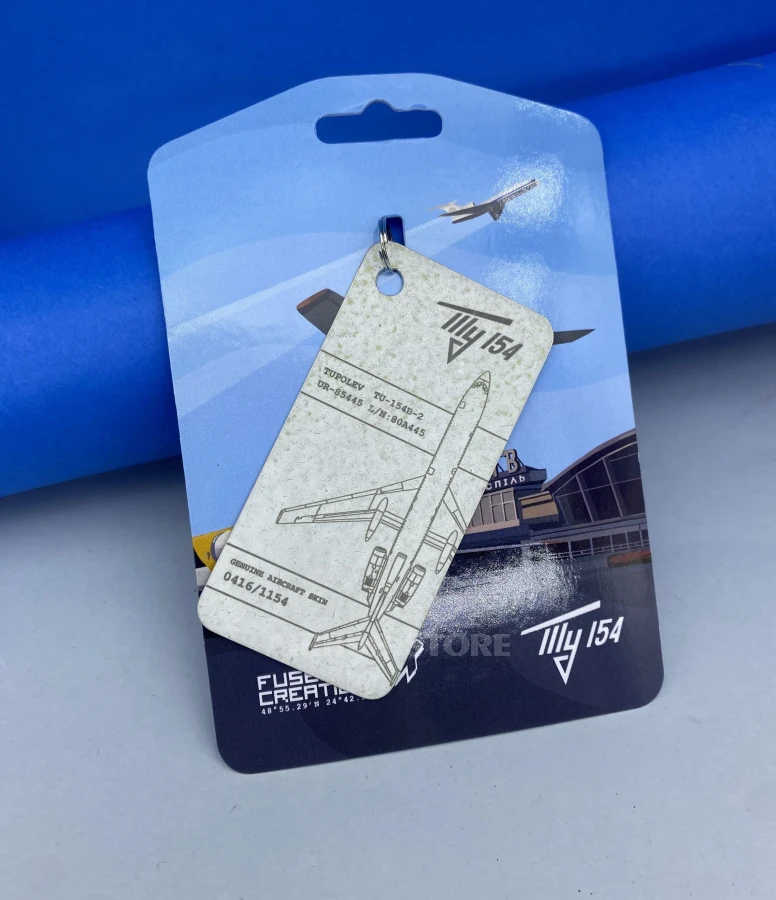 This keychain is made from a real Tupolev Tu-154B-2 aircraft with serial number 0445 - a plane with a unique and little-known history. The aircraft was delivered to the Ukrainian SSR in 1980 and made its first flight on September 15, 1980, under registration CCCP-85445.