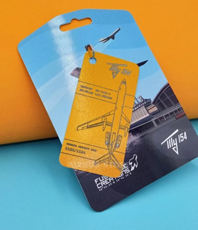 This keychain is made from a real Tupolev Tu-154B-2 aircraft with serial number 0445 - a plane with a unique and little-known history. The aircraft was delivered to the Ukrainian SSR in 1980 and made its first flight on September 15, 1980, under registration CCCP-85445.