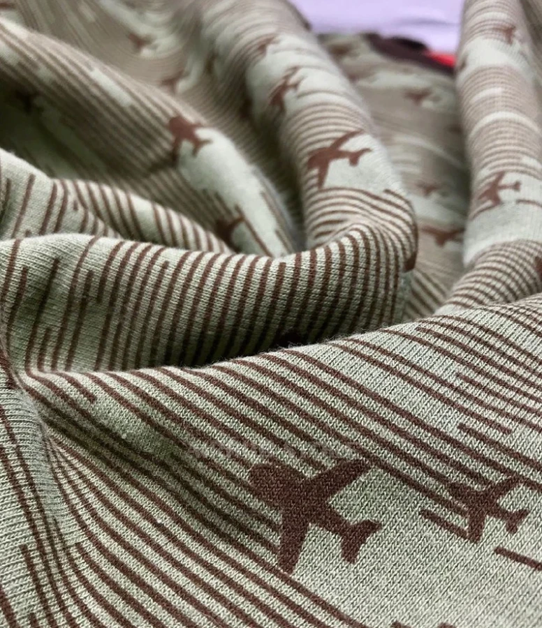 A lighthearted mood in everyday style. A small aviation print with airplane silhouettes creates a dynamic yet understated look.