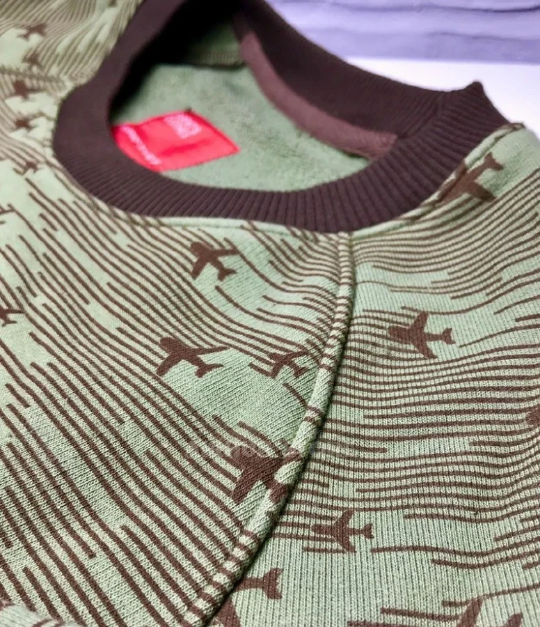 This sweatshirt is the perfect combination of style, comfort and personality. The deep green color adds nobility, and the unique airplane print emphasizes your love of travel and freedom. It's not just clothes - it's an expression of your character, courage and desire for new discoveries.
