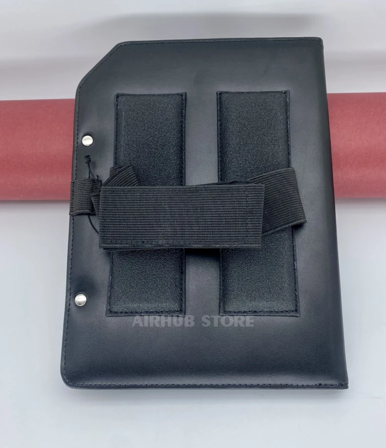 This elegant and very high-quality A5-size knee pad is made of environmentally friendly leather. The wide Velcro strap is individually adjustable and can be replaced with a new strap if necessary. The tablet is very comfortable, with anti-slip pads for stability, a clip, two elastic pen holders, and a stopwatch socket.