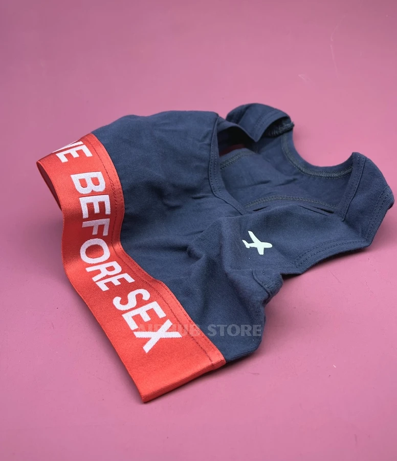 This set will be an ideal choice for those who appreciate the combination of seduction and comfort. The “Remove Before Sex” lingerie line in blue includes a top and panties. This stylish and bold design creates a special mood, emphasizing individuality and self-confidence.
