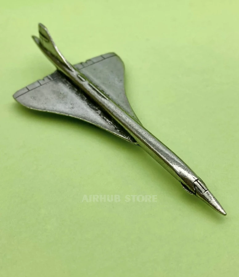 This pin is made of high quality metal and has a detailed shape of a Concorde airplane. It depicts the legendary supersonic passenger aircraft, which is known for its history and incredible capabilities. It can be a great addition to your clothes, bag or as a decorative item in your aviation corner.