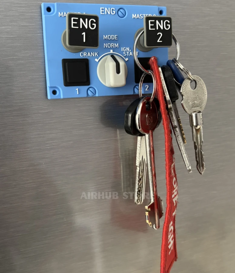 ENG 1 and ENG 2 are not just toggle switches, but key hooks. The product is both functional and stylish, suitable for use at home, in the office, or as a gift for an aviation enthusiast or pilot. In addition, thanks to the holes in the keyholder, it can be attached not only to the refrigerator but also to the wall.