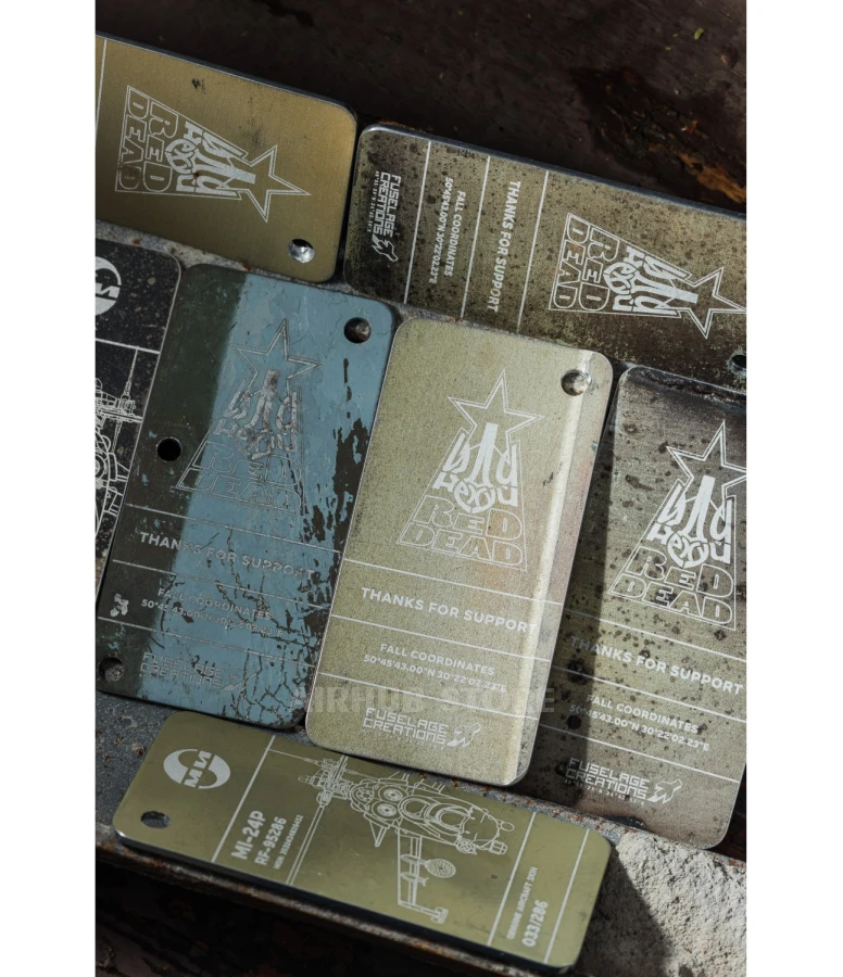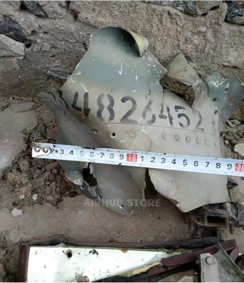A keychain made of real airplane skin. These parts belonged to a Su-35S, a standard Russian Air Force aircraft, the letter S stands for “Stroyevoy”. The plane was engaged in combat operations against Ukrainian air defense in the Kherson region, near the village of Shlyakhove, and it was there that it met its final fate and was shot down.