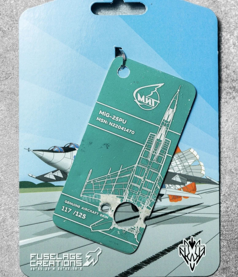 This keychain was made from a part of the MiG-25PU MSN:N22041470 aircraft