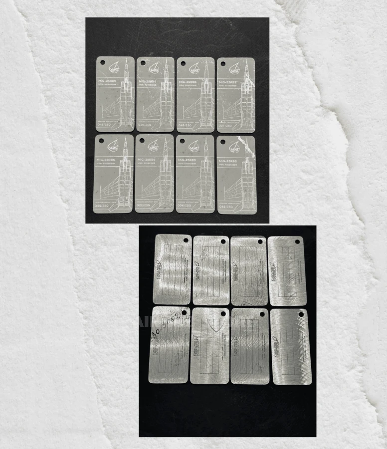 In the early 2000s, after the MiG-25 was finally retired from service with the Ukrainian Air Force, the aircraft was transferred to the Oleg Antonov State Aviation Museum. During the restoration of the vertical stabilizer, the team at Fuselage Creations was able to preserve a section of the skin and transform it into commemorative keychains. That is why this keychain is not just an accessory, but a real piece of aviation history that allows you to literally touch a legend.