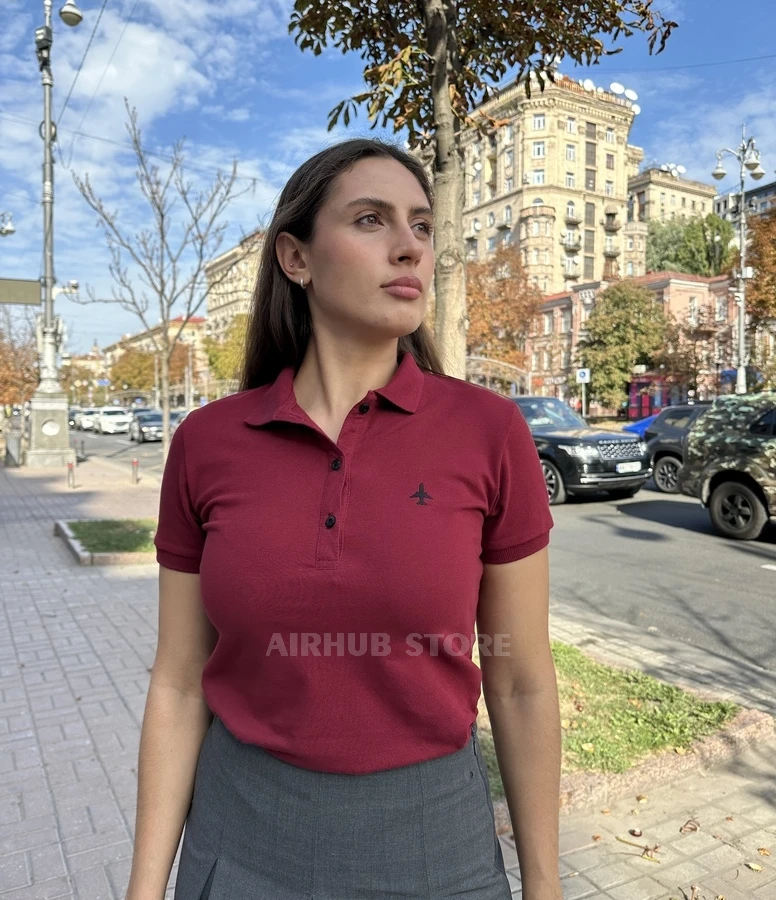 Burgundy minimalist polo with airplane (100% Cotton , S , Female)