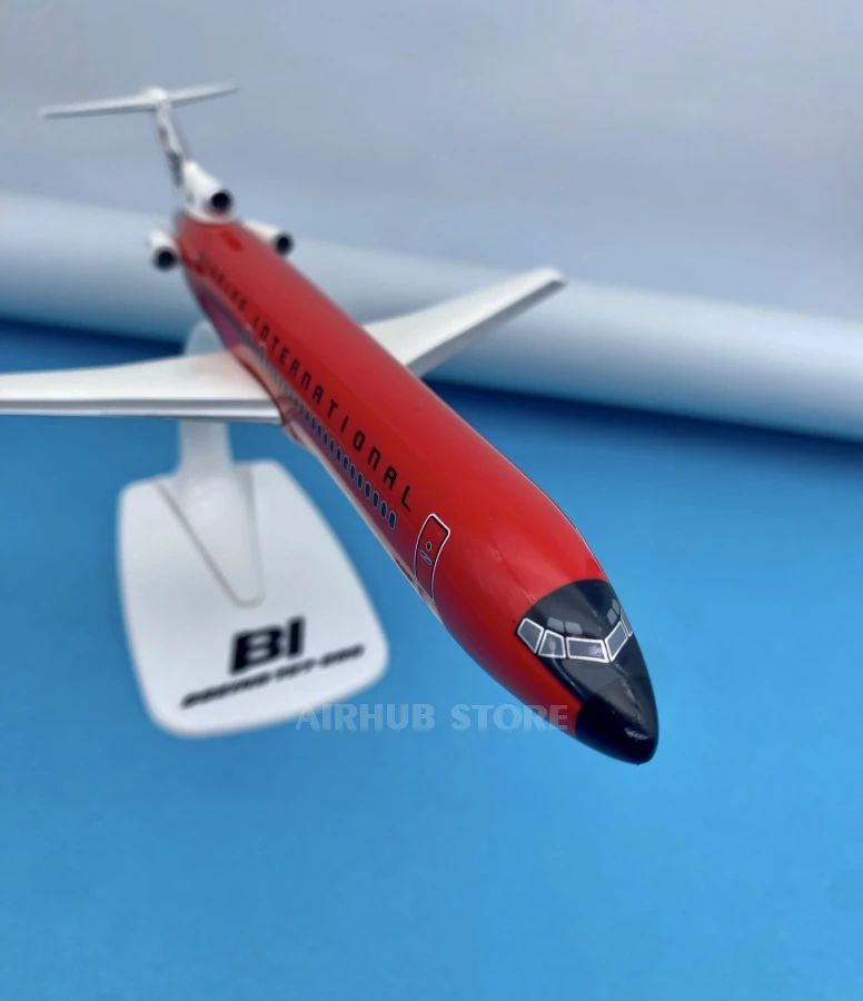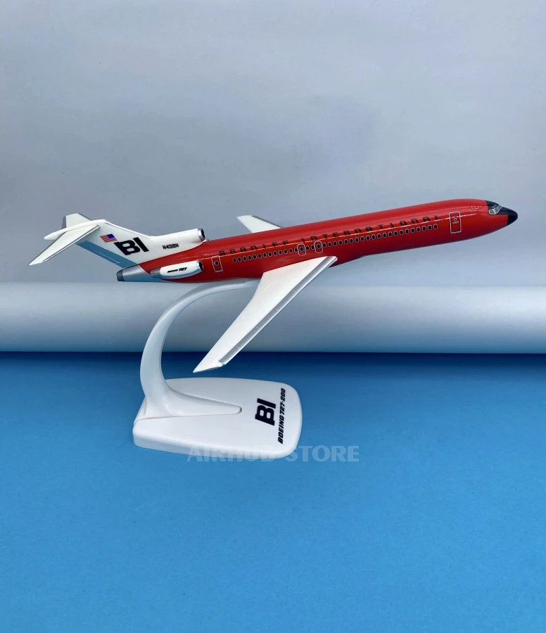 This large-scale model of the Boeing 727-200 recreates one of the most iconic jet airliners of the 1960s and 1980s. Braniff International Airways made civil aviation history with its revolutionary approach to design. The Solid Color livery series was a real breakthrough at the time, and the all-red Solid Red version is one of the most famous and daring examples of 20th-century aviation branding.