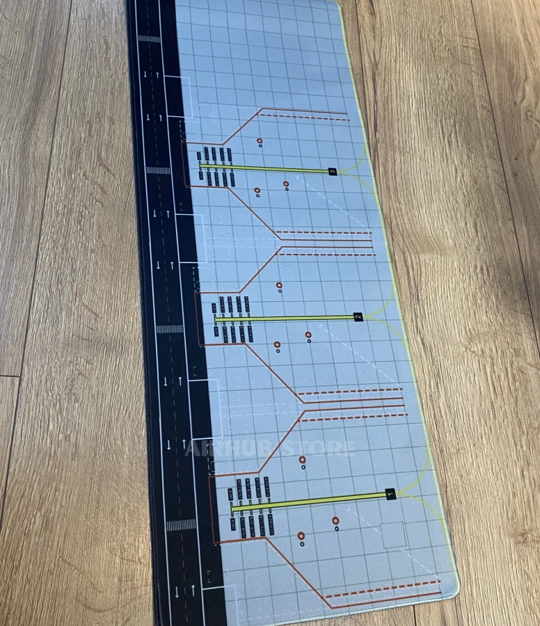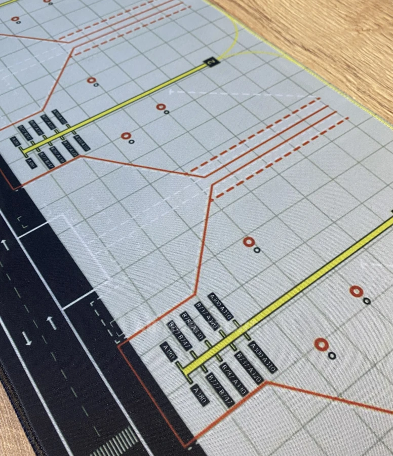 The Airport Apron mat recreates an airport work area with its characteristic markings: taxiways, parking spots, and service markings. The details are designed to resemble the actual diagrams used at airports.
