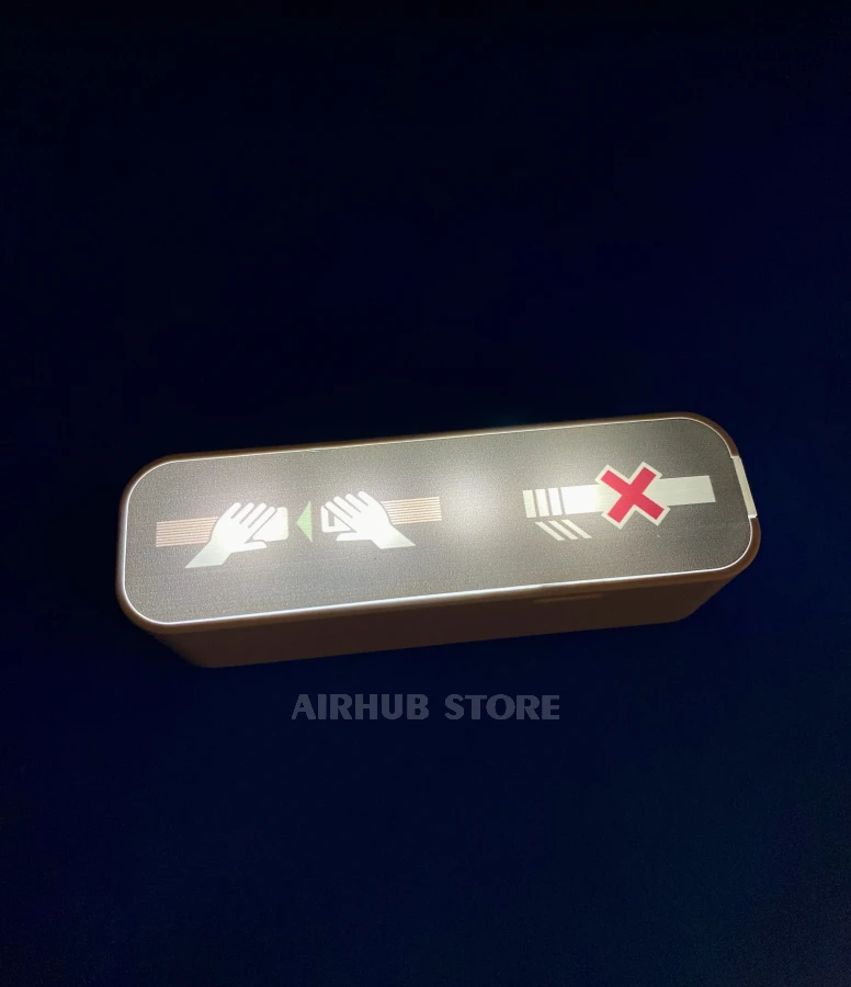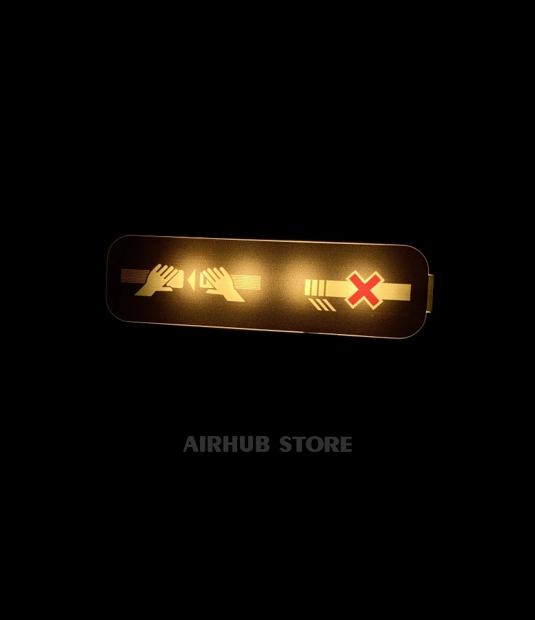 This aviation night light reproduces the iconic indicator from the aircraft cabin—a combination of the Fasten Seat Belt and No Smoking signs familiar to every passenger. The design immediately evokes associations with flight, safety, and the atmosphere of aviation.