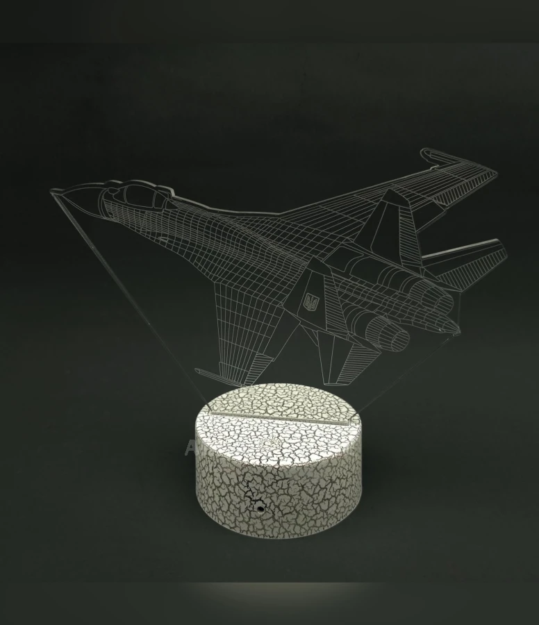 The MiG-29 night light with 3D effect and remote light control is the perfect way to create an aviation atmosphere in your room. Feel the power of the Ukrainian sky with a night light in the shape of a MiG-29 fighter jet - a real decoration for your home or workplace. Ideal for both children and adult fans of military aviation.