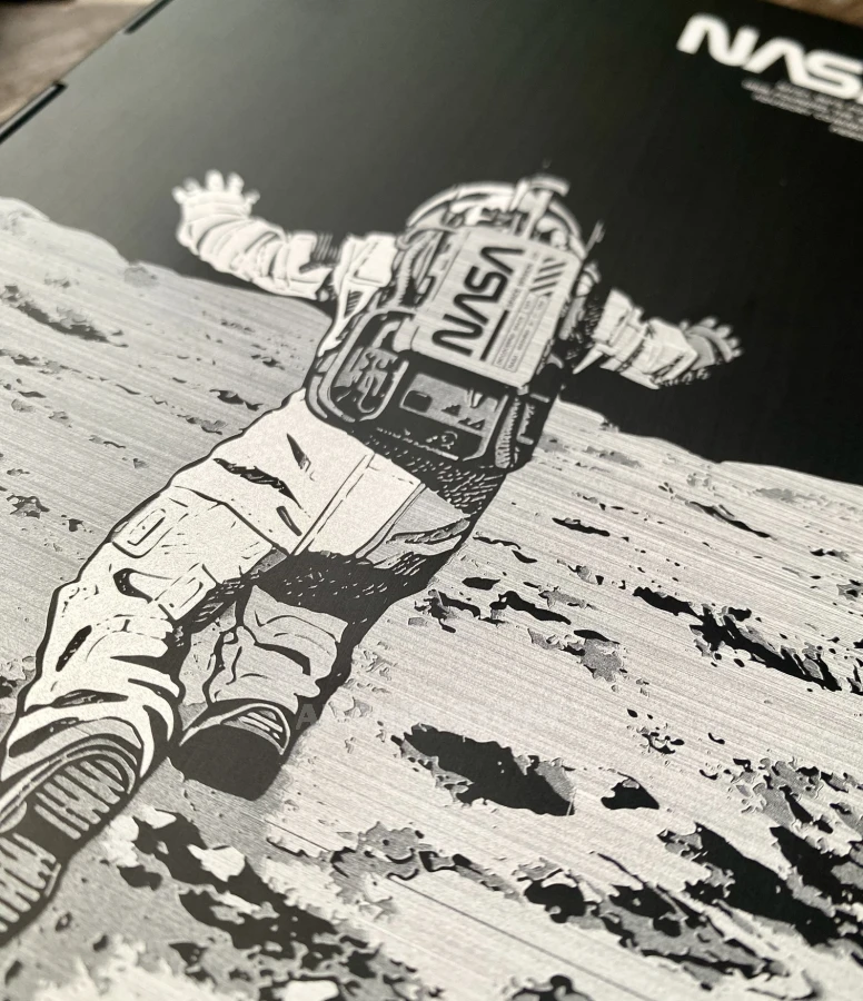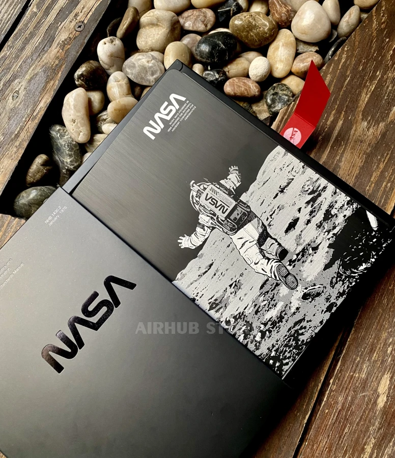 This NASA notebook is the perfect choice for those who love the combination of style, durability and space spirit. The cover is made of anodized black metal and decorated with a detailed engraving of an astronaut on the surface of the moon.
