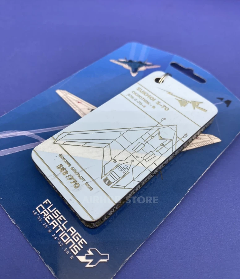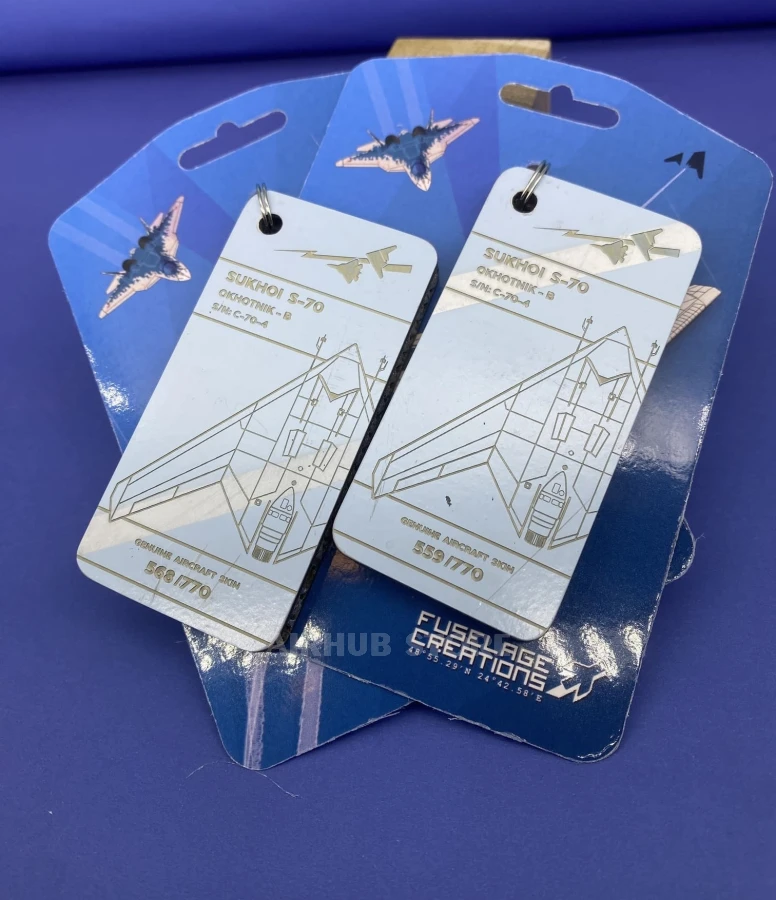 Keychain from the downed Russian Sukhoi S-70 Okhotnik-B (Light blue , S-70 Okhotnik)