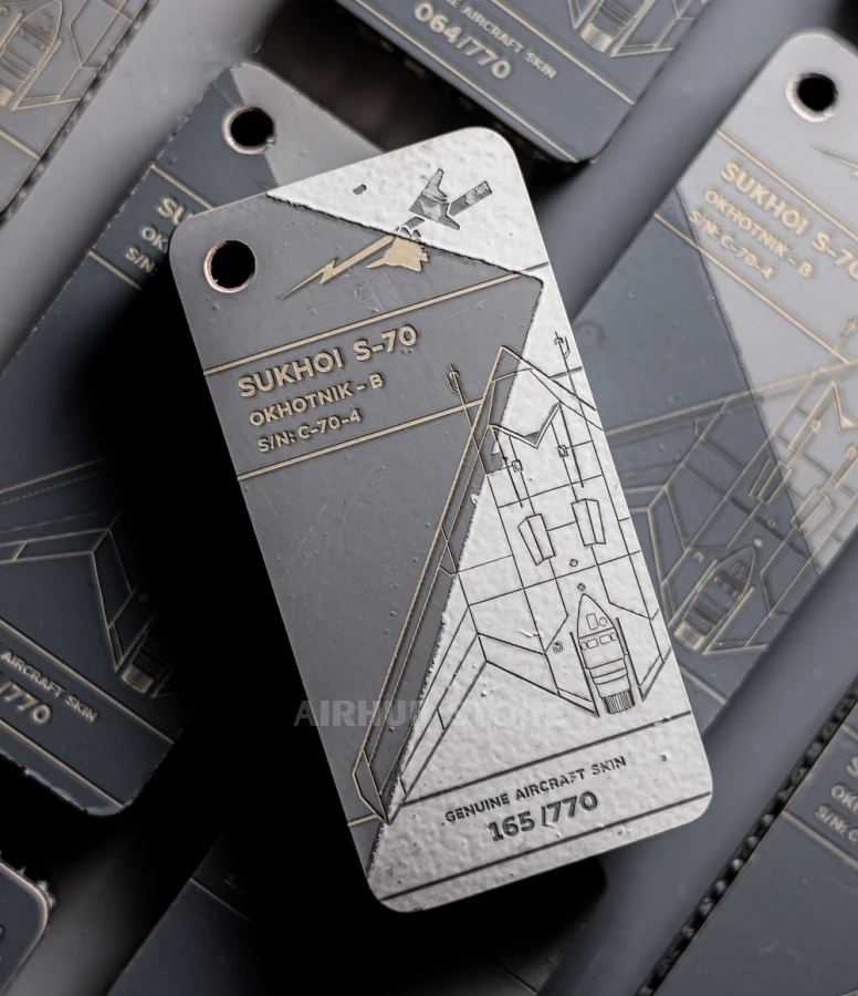 A keychain made of real Sukhoi S70 Okhotnik-B (Okhotnik-B) is a heavy, stealthy unmanned combat aircraft (UAV). The development of the S-70 was started in 2011 by Sukhoi and later by the MiG aircraft corporation. The so-called Russian “innovative” prototype is apparently a “borrowed” version of the Boeing X-45 and Northrop Grumman X-47B programs from the early 2000s.