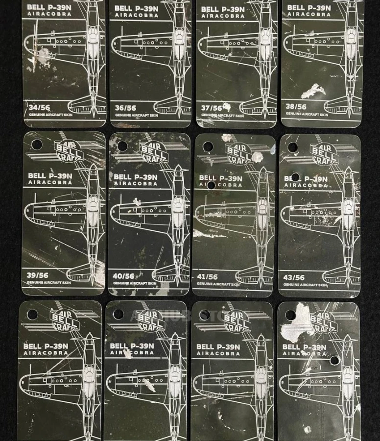 This tag is made from a fragment of the fuselage door of one of the P-39N fighters that crashed in the Murmansk region during hostilities. The exact serial number of the aircraft remains unknown, but each tag is a real fragment of combat aviation history.