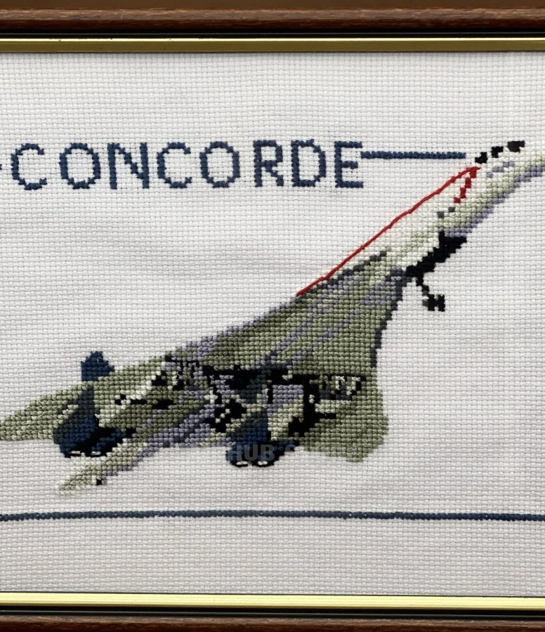 This unique painting depicts the legendary Concorde hypersonic passenger airplane, a symbol of engineering excellence and aerodynamic perfection. The refined execution, delicate use of threads and details emphasize the speed and elegance of this aviation masterpiece. The painting will be a great addition to any collection or a gift for aviation fans and this airplane.