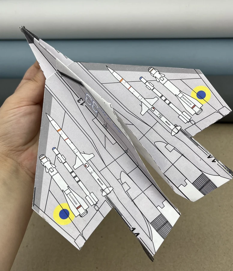 The model’s design replicates the distinctive features of the MiG-29 fighter jet, including the wing shape and overall geometry. Thanks to this, the paper airplane not only looks recognizable but also flies well.