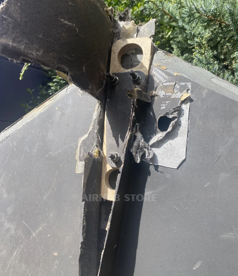 A real fragment of a carbon propeller from a downed Geran 2 UAV. The propeller is made of carbon with a titanium part and shows signs of damage, without restoration or processing.