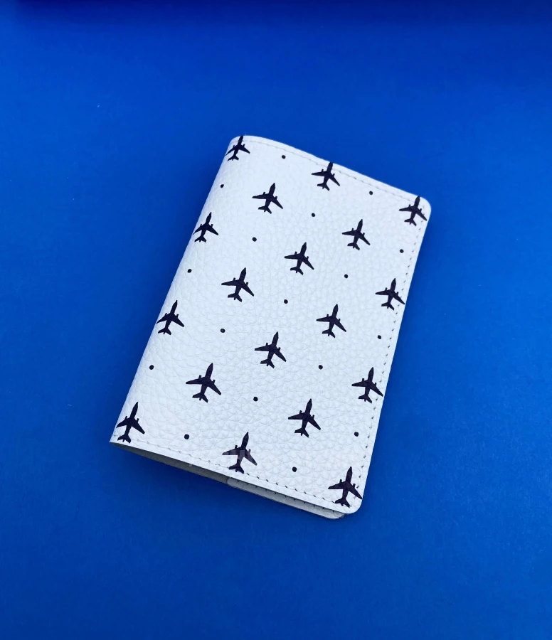 This passport cover is designed for those who cannot imagine life without traveling and flying. Made of pressed leather, it combines durability and elegance, and its main feature is a highly detailed aviation print. Dozens of airplane silhouettes form a stylish print that evokes the boundless sky and the spirit of adventure.