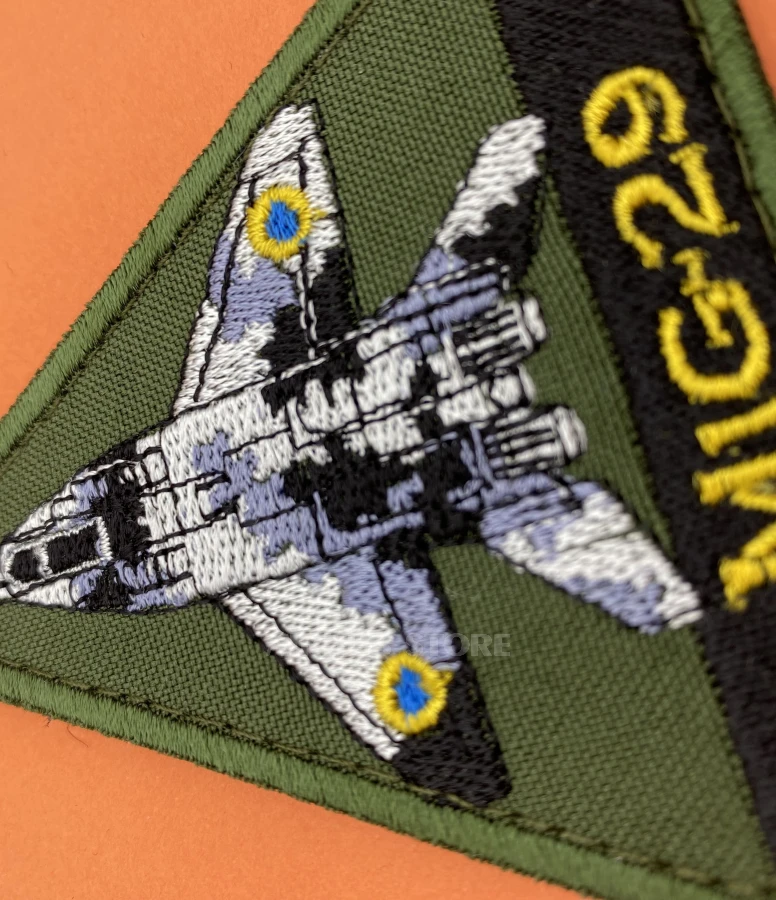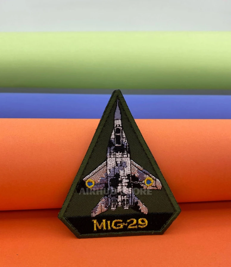 The patch depicts a MiG-29 aircraft, a fourth-generation multi-role fighter. It is currently in service in Ukraine.
