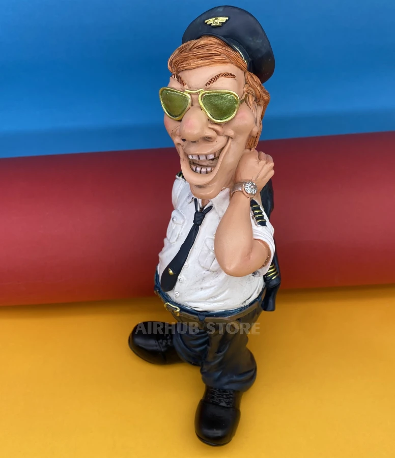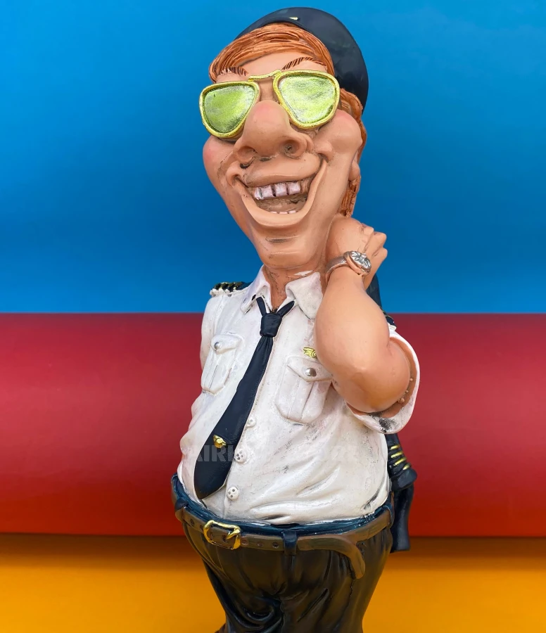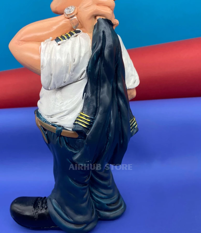This figurine is a master class in character. The pilot, leaning slightly back, holds his jacket around his neck, and his face shows an expression of “I did it perfectly”. Dressed in a short-sleeved shirt with shoulder straps, navy blue pants, tie and cap, he exudes confidence and calmness.