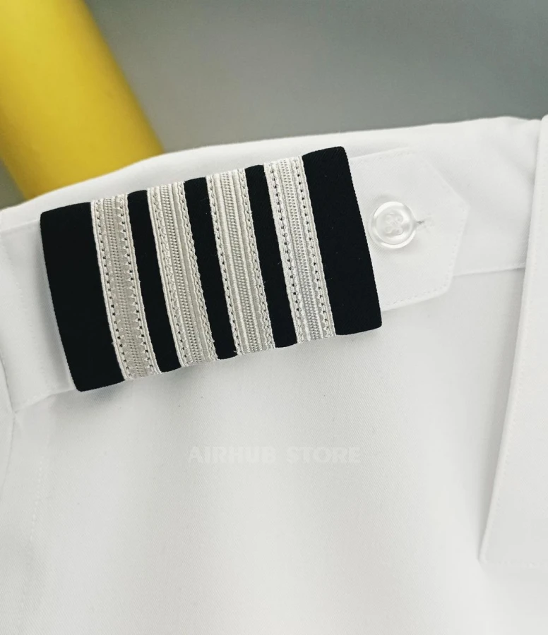 The shoulder straps with 4 stripes symbolize the highest rank in the cockpit - the captain. They are made of dense fabric with gold or silver ribbons, which are highly durable and do not lose their appearance even after active use.