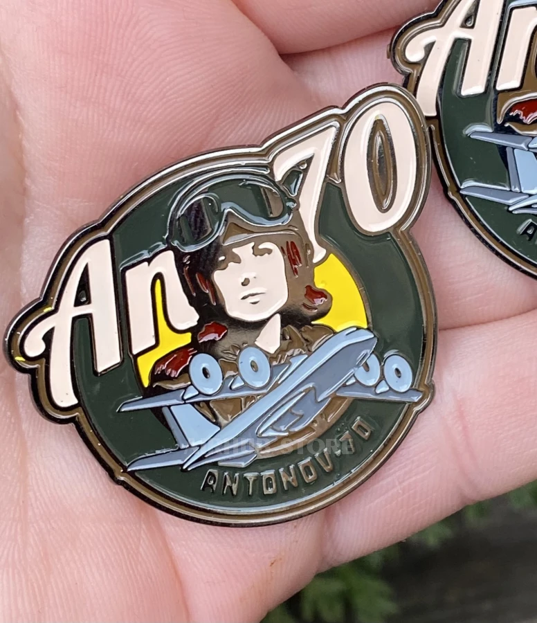 The pin depicts the AN-70, a medium-range military transport airplane developed by Antonov. The aircraft is designed to replace the morally and physically obsolete An-12. This badge with the legendary Antonov 70 airplane is an ideal gift for aviation fans and Antonov fans!