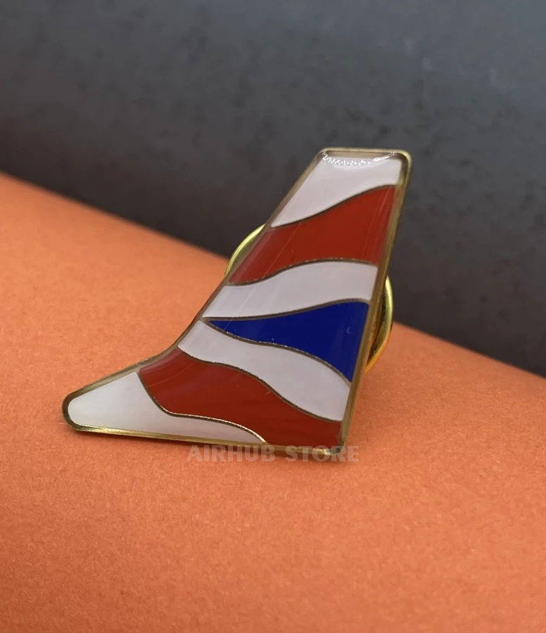 A detailed design that accurately reproduces the keel of a British Airways aircraft with all the distinctive elements. Add this badge to your collection or attach it to your bag, backpack or keys to show your love for aviation and British Airways!