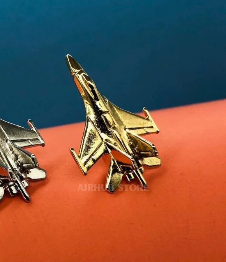 This pin is made of high-quality metal and has a detailed shape. It is a miniature replica of the Su27 fighter jet! This badge is a great way to express your interest in aviation and military equipment.
