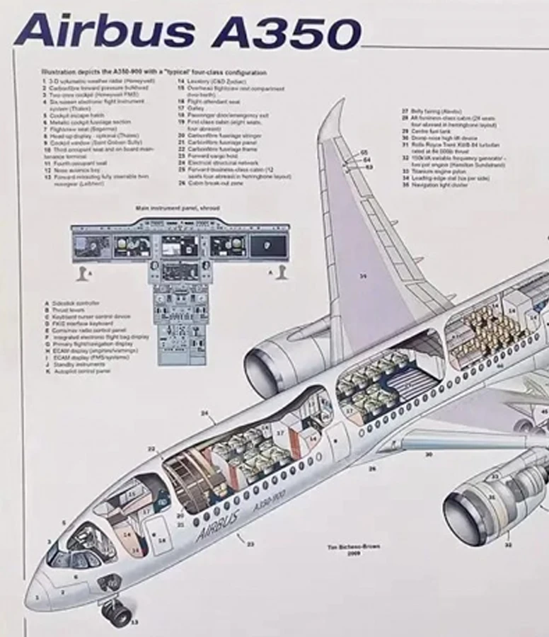 Airbus A350 XWB (Extra Wide Body) is a family of long-range wide-body twin-engine passenger aircraft developed by Airbus as a replacement for the A330 and A340. The first Airbus airplane to feature a fuselage and wing made primarily of carbon fiber.