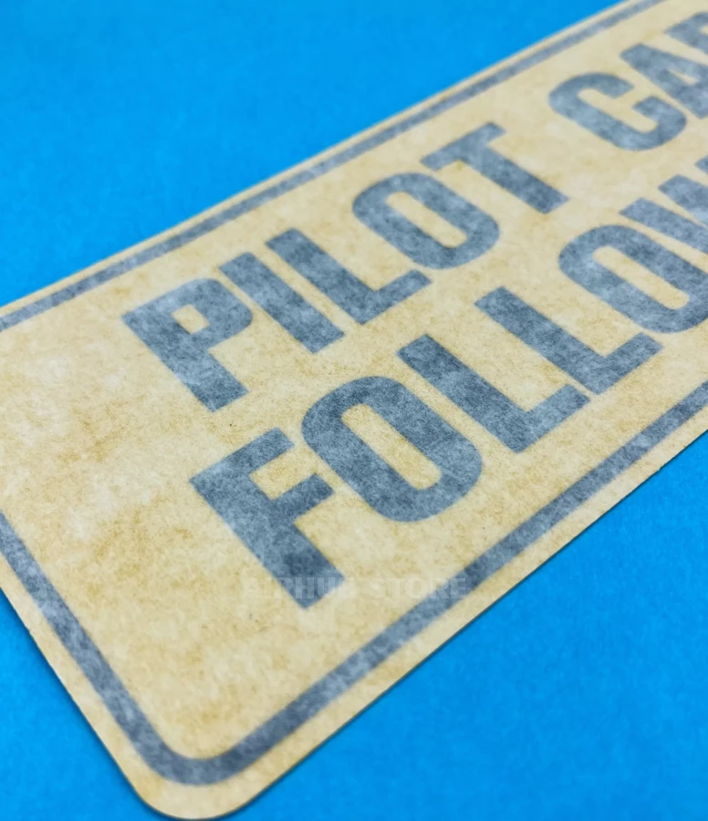 High quality reflective material provides excellent visibility even in the most difficult conditions. Add an aviation character to your belongings, emphasize your uniqueness and provide an additional level of safety with the Pilot car follow me sticker.