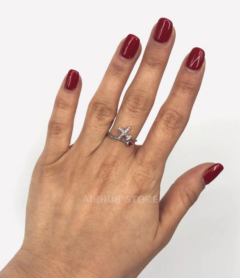 Airplane with a small star Ring (Regulated , Silver 925° , Red)