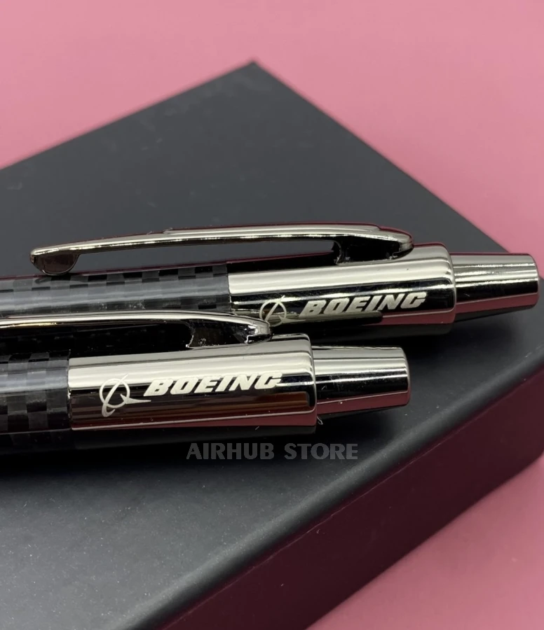 Carbon fiber is a low-density material used in the innovative 787 Dreamliner. The set includes a ballpoint pen and a mechanical pencil. They are made of brass, steel and real carbon fiber. The Boeing logo is laser engraved on the top of the pen and pencil.