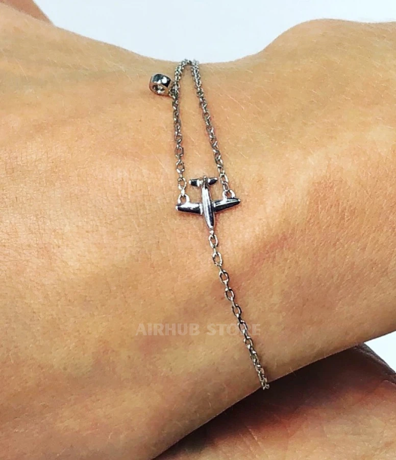 Silver Bracelet with a classic airplane is a gift for girls who work in aviation and love aviation.