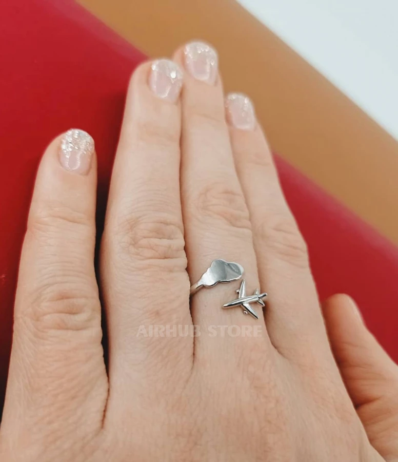 On this ring, you can see a rather minimalistic airplane and cloud. They give this decoration a special meaning, recalling the passion for aviation and flying.