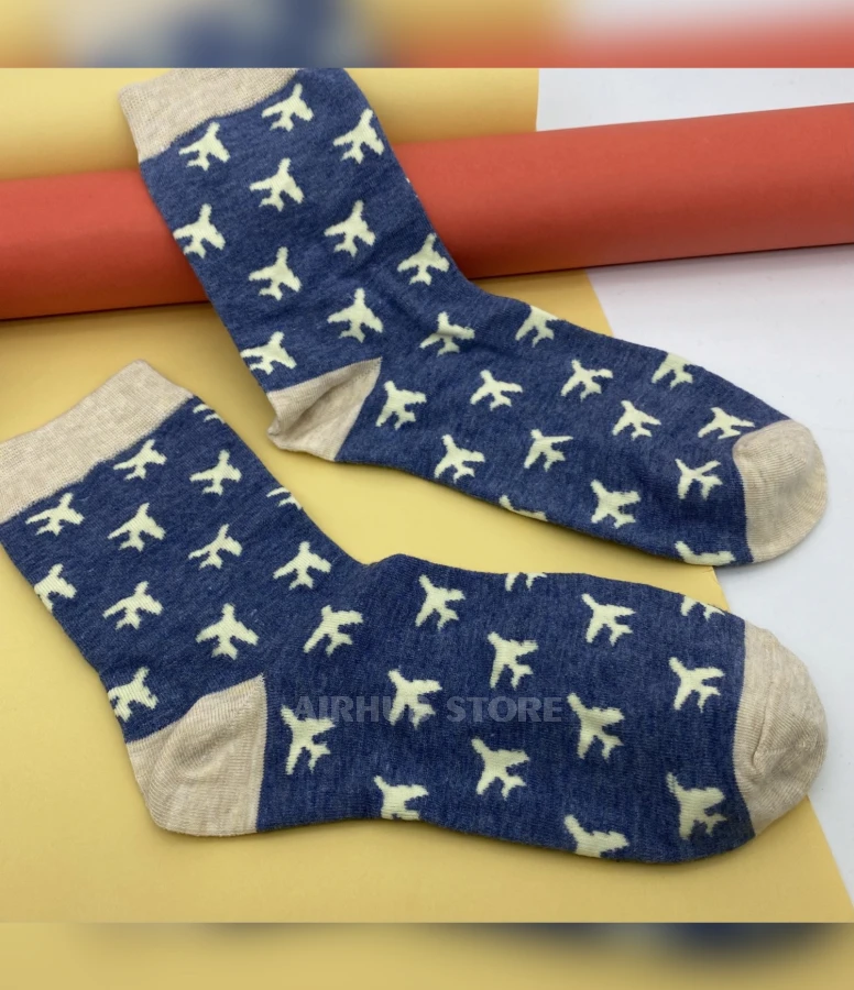 Beige socks with airplanes are a stylish and comfortable accessory for aviation fans. Made of soft and comfortable material, they are ideal for everyday wear, traveling or as a gift for a pilot or airplane fan.