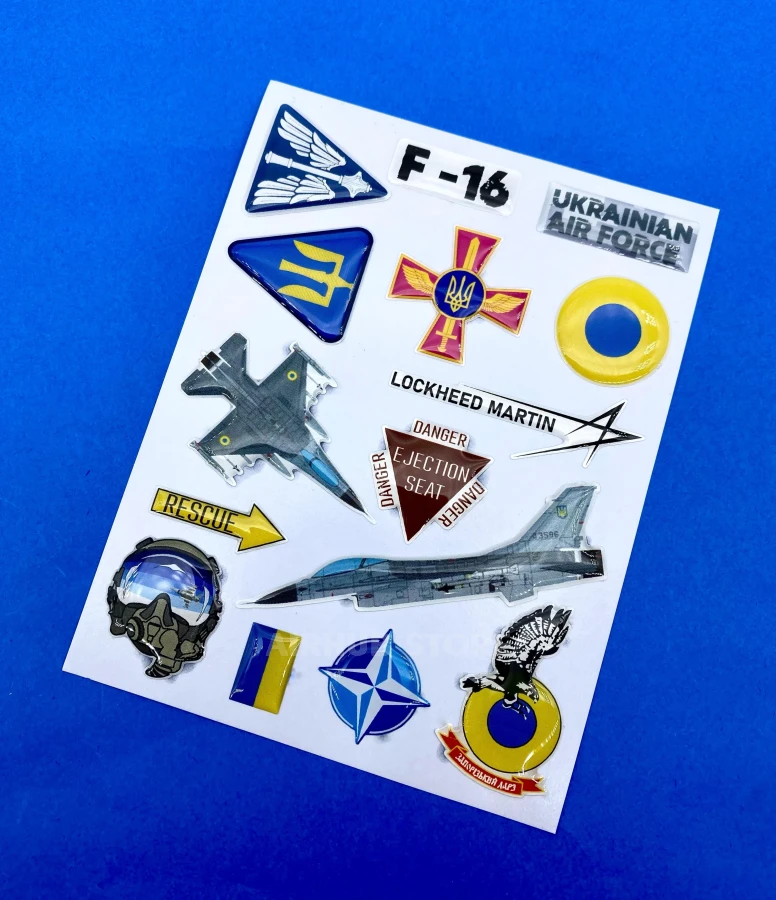 You can order F-16 stickers on our website or purchase them in our store at 50b Khreshchatyk Street, Kyiv. We provide fast delivery anywhere in the world and guarantee the quality of every product.