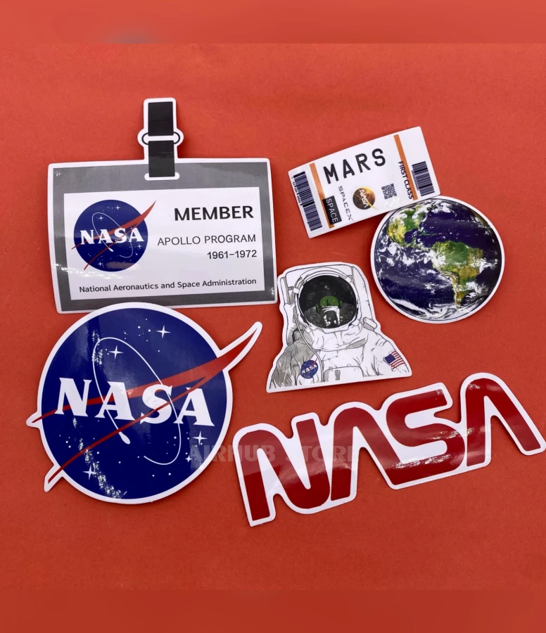 Immerse yourself in the unique world of space with the NASA sticker pack. Each sticker is a window into space where you can see planets and astronauts. This sticker pack offers an unrivalled opportunity to immerse yourself in the world of NASA and its great achievements.